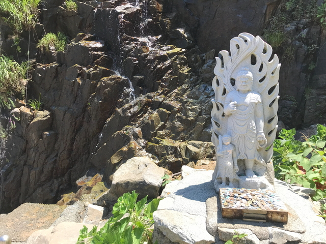 上陸可能な範囲は狭く不動明王像が鎮座している滝前までとなっています。 |