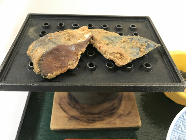 さばのへしこは、火で炙って食べるのが一般的らしく、「くさや」をマイルドにして味噌味にしたイメージで結構おいしい。 ごはん大盛りで欲しくなってしまうダイエットの敵となる存在でした。農山漁村の郷土料理百選【さばのへしこ】達成です。 |