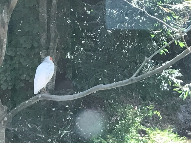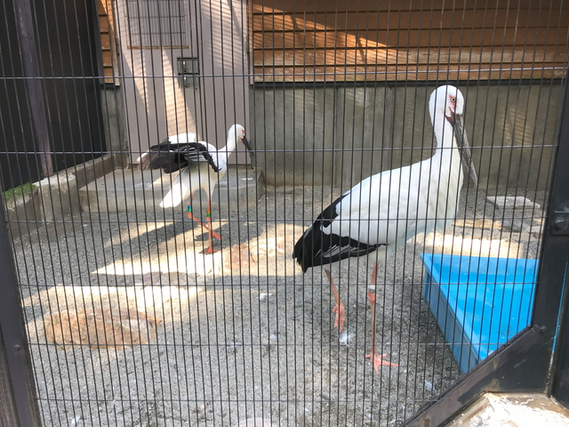 トキさんです。 一番扱いが良い部屋に3羽いました。白いボディに顔が赤いのがトキさんの特徴です。 |