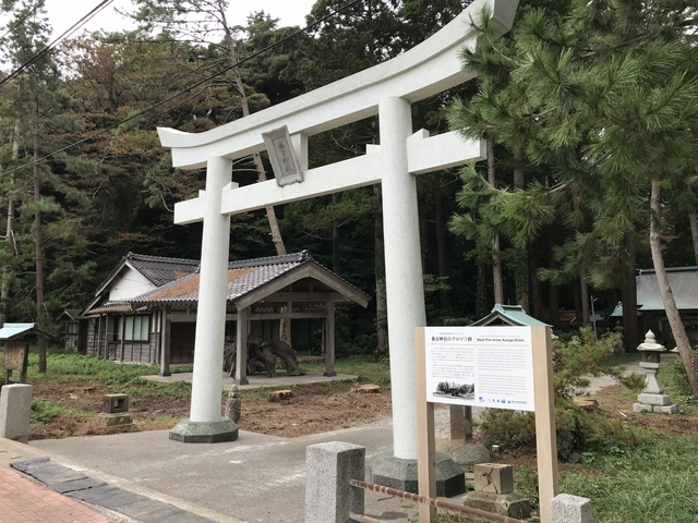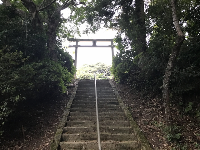 妻が絶対行きたいリストの1番手にあげていた国府尾城(こうのじょう)跡を訪ねます。 国府尾城は、島後の南方に位置する城跡で、現在確認できる城跡としては隠岐諸島で唯一の存在です。別名として甲ノ尾城とも表記したようです。 鳥居の向かって右手側に「国府尾城址の説明板」があり駐車スペースとなっています。 |