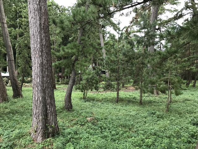 屋那の松原は、立派な松も残ってはいるものの、一帯として結構荒れており、観光地化はされていません。 範囲は狭く約250mほどの区間に松林が残っています。 |