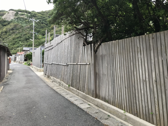 油井漁港の看板周辺の写真です。 【奥能登の間垣】のような風景が広がっています。 |