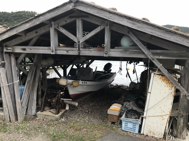 未来に残したい漁業漁村の歴史文化財産百選【都万漁港船小屋】を訪ねます。 都万漁港船小屋(つまぎょこうふなごや)は、島根県隠岐の島町都万にある船小屋です。現在も現役で活躍中なのだとか。 |