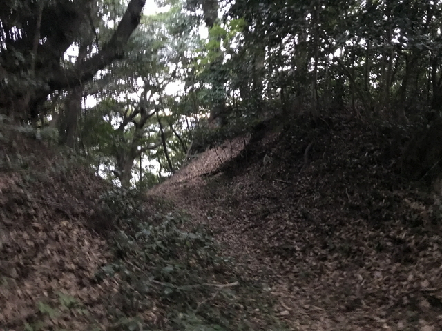 国府尾神社の裏手には堀切跡と思しき構造があります。 |