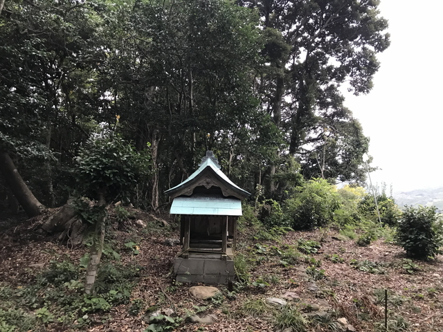 本丸跡地です。 曲輪跡地に小さな社が鎮座しているだけです。蚊が大量に飛んでおり7匹撃墜しましたが、2カ所被弾していました。 |