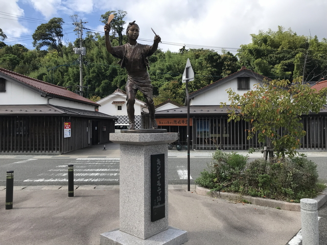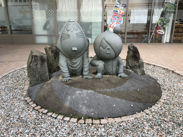 ターミナル近くにあるキンニャモニャ踊りの像を撮影してレンタカーの返却です。 中ノ島では33qの走行でした。ガソリンは1q20円計算ですが、いちいち満タンにしなくて良いのは楽で良いです。 |