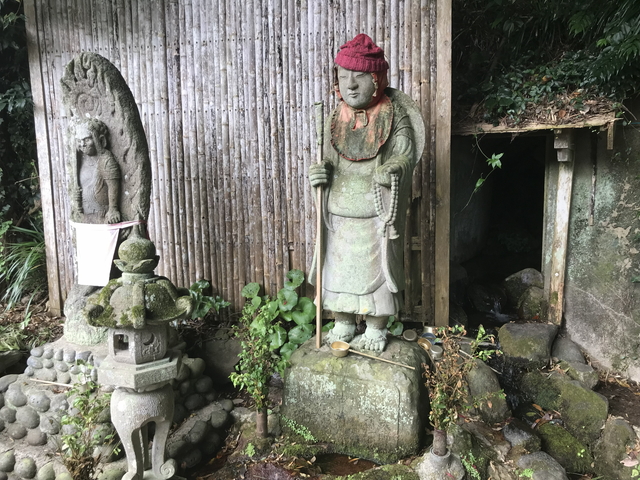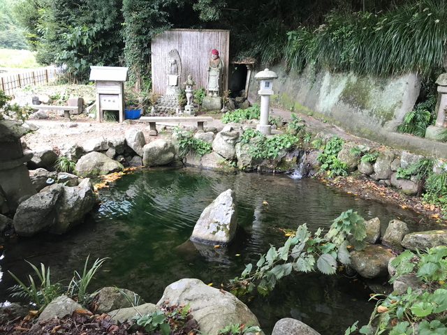 お地蔵さんの右側から湧水が流れ出てきています。 |