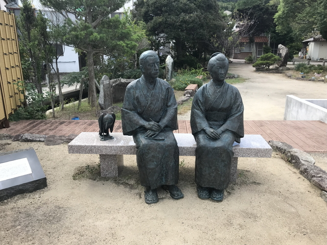小泉八雲(こいずみ やくも)さんとその奥さんのセツさんの銅像です。 小泉八雲さんは、日本に帰化したアイルランド系イギリス人で、松江城周辺に小泉八雲記念館があります。 私は、日本の道100選【塩見縄手】の顕彰碑が小泉八雲記念館前にあるので知っていただけで、記念館に入ったことはありません。隠岐旅行を楽しんだだけで銅像が建つなんてかなりの大物なのだろうか。 |