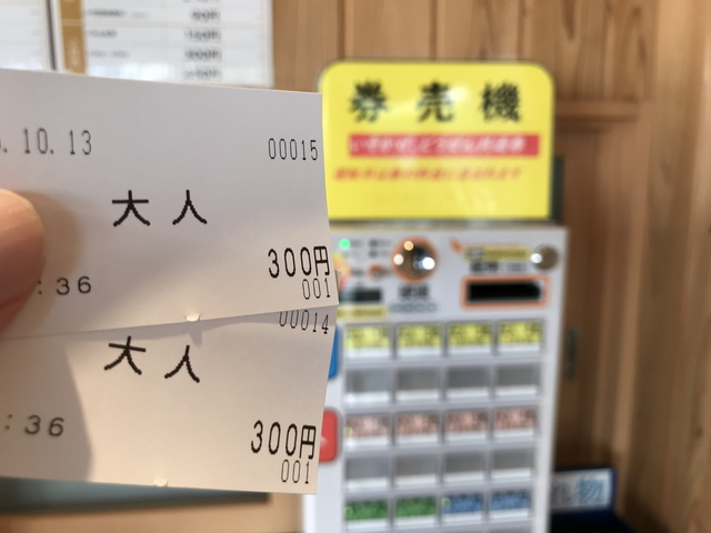 妻がお土産探ししている間にチケットを購入します。大人一人300円でした。安いな。 |