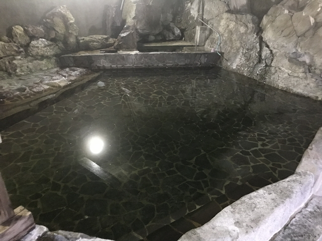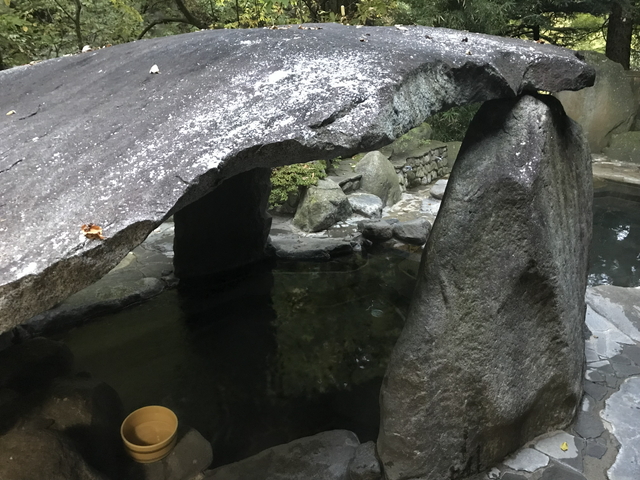 露天の岩風呂です。 基本混浴ですが、19時から21時は女性専用となり、女性は湯浴み着も着用可能です。 |
