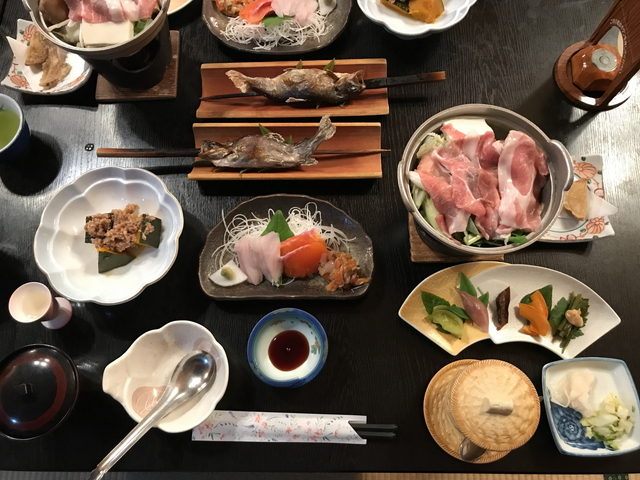 夕食です。食堂で食べます。 それなりに美味しく頂けましたが、デザートの柿を食べると口が痺れたので、驚きました。ハズレの個体だったのか、軽易の食中毒なのか。 クレームを入れるほどではないけど、犬猫が玄関口にゴロゴロしているので衛生面には気を付けて欲しいと感じます。 |