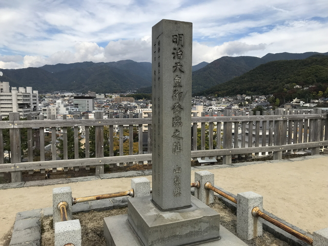 天守台に「明治天皇御登臨之址」の石碑が建立されています。 江戸時代に入ると、江戸城を守る為の親藩大名若しくは幕府直轄領として重要拠点に考えられた城です。しかし、明治維新では無血開城となりました。 |
