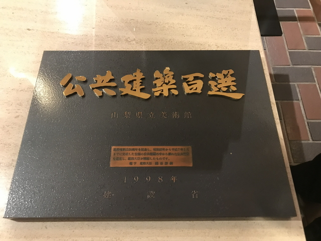 公共建築百選【山梨県立美術館】の顕彰碑は発見に至らず、スタッフの方に声をかけました。 とても積極的に探して頂き、事務所の方で保管されていたようで撮影させて頂けました。ありがとうございます。 |