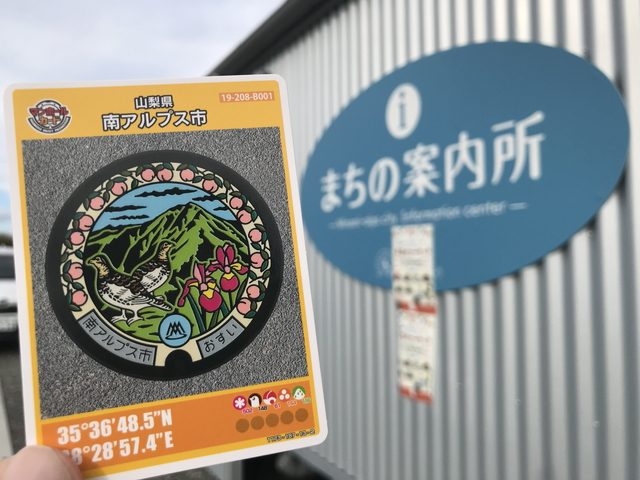 fumotto南アルプス「まちの案内所」を訪ねて、南アルプス市Bのマンホールカードを頂きます。 |