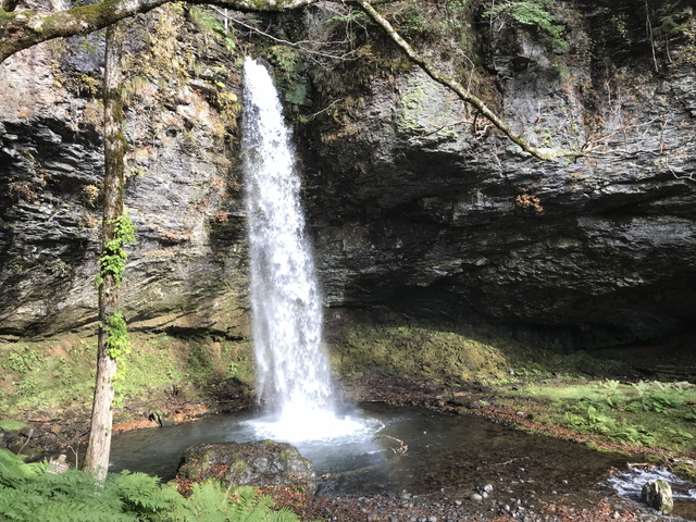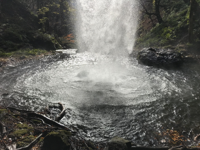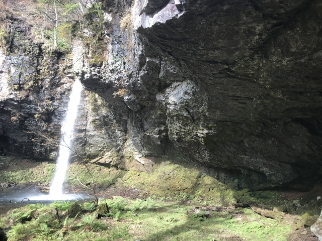 大鹿滝は、裏見の滝となっており、滝の裏を抜けて次の滝に向かいます。 |