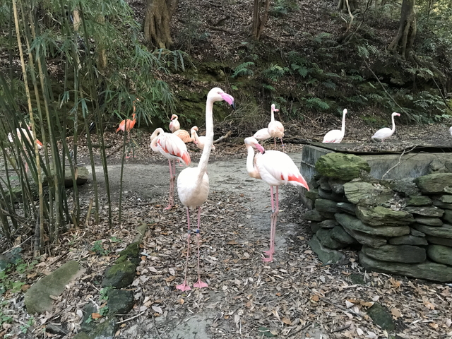 フラミンゴさんです。柵がないわけですが、何かフラミンゴさんが嫌う音なり匂いなりで移動を制限しているんだろうか。 |
