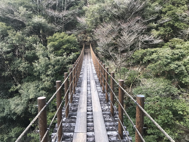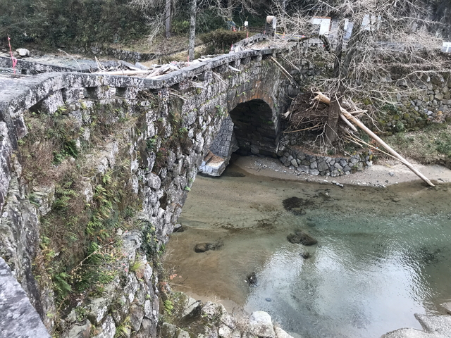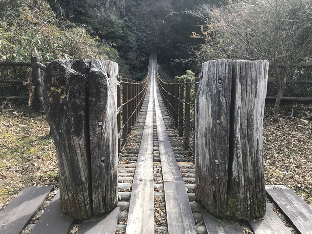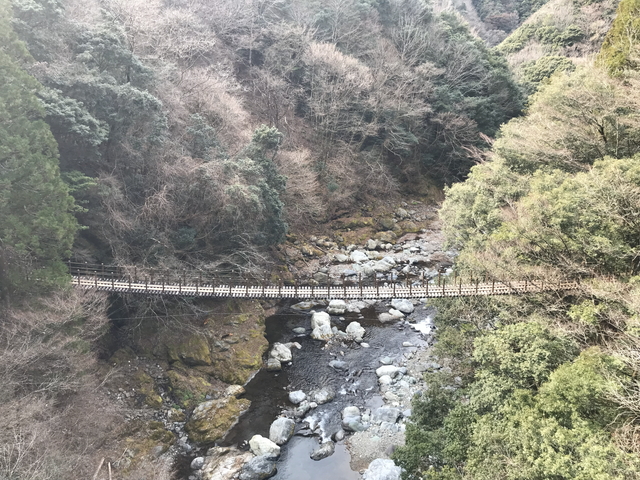 こちらは二俣福良渡です。こちらは無事なようで普通に歩けます。 二俣福良渡から見ると、秋から2月にかけての正午頃に太陽光が橋(二俣渡)の下にハート型をつくることから話題になったそうです。 |