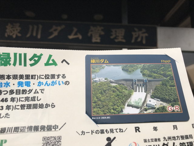 緑川(みどりかわ)ダム管理事務所、船津(ふなつ)ダム管理事務所を訪ねて、ダムカードを頂きます。 お正月からご苦労様です。 |