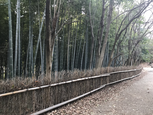 財団法人大阪府公園協会が管理を行っている公園で、かなり広い公園で、地元民で賑わっています。正式名称は「大阪府営服部緑地」です。 駐車場の近くにも竹林が広がっています。これも【千里丘陵の竹林】だろうか。 |
