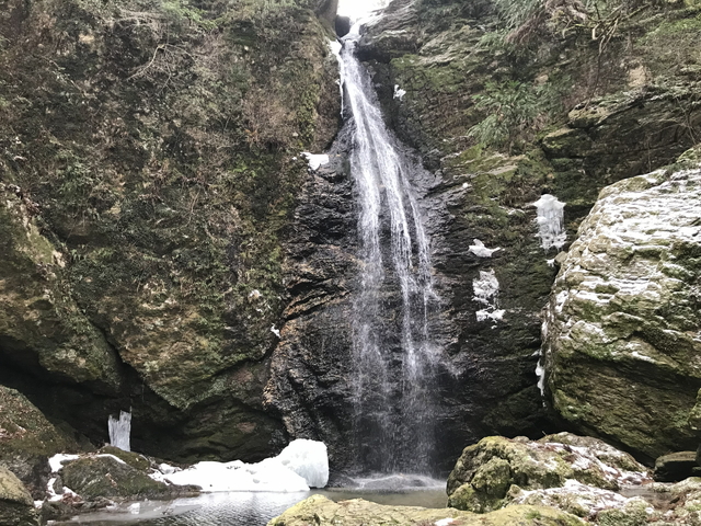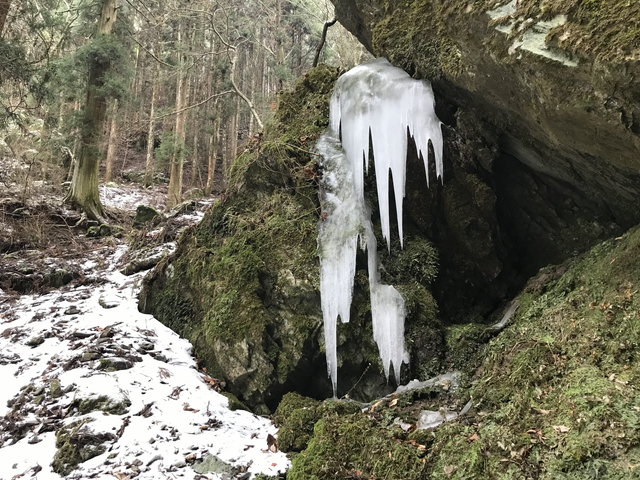 滝の一部も凍っていましたが、周辺も大きなツララが形成されています。 |