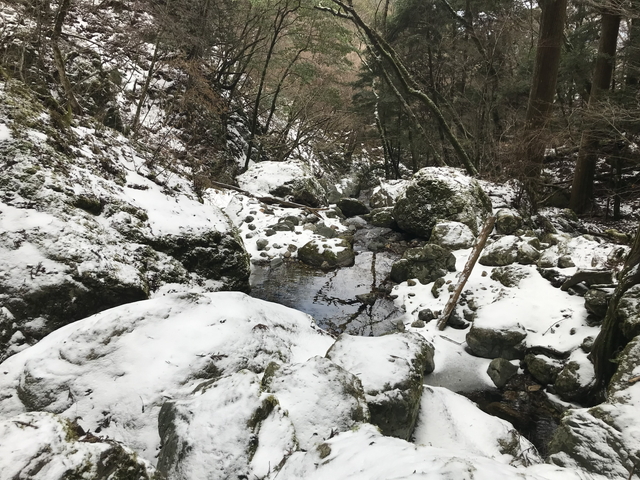 滝壺には、アメゴ(アマゴ)や山椒魚などが生息しているとの情報もありましたが、このサイズの滝壺で…?と思いましたが、禁漁案内があったりもしたので存在しているのでしょう。 |