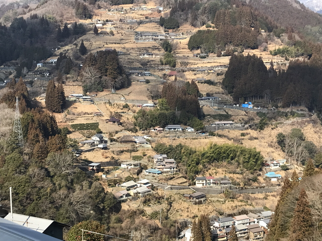展望所は、祖谷川をはさんでいるため、それなりの距離感はありますが、落合地区の集落が見渡すことが出来ます。 重要伝統的建造物群保存地区【三好市東祖谷山村落合】の特色である集落内の標高差が390mに及ぶ点は、こちらの展望所から眺めるのが一番分かりやすいと思います。 |