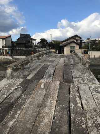 令和08年01月02日に訪問しました。 祇園橋(ぎおんばし)は、熊本県天草市を流れる町山口川(まちやまぐちがわ)に架かる橋です。 祇園橋は、天保03年(西暦1832年)に石橋として架橋され、現存しています。祇園橋は、28.6m、幅3.3mあり石造桁橋では国内最大級の橋とされています。 寛永14年(西暦1637年)、島原・天草一揆で町山口川を挟んで幕府軍と反乱軍が激突しました。その歴史を示す石碑が祇園橋の近くにありました。 日本百名橋【祇園橋】。 |