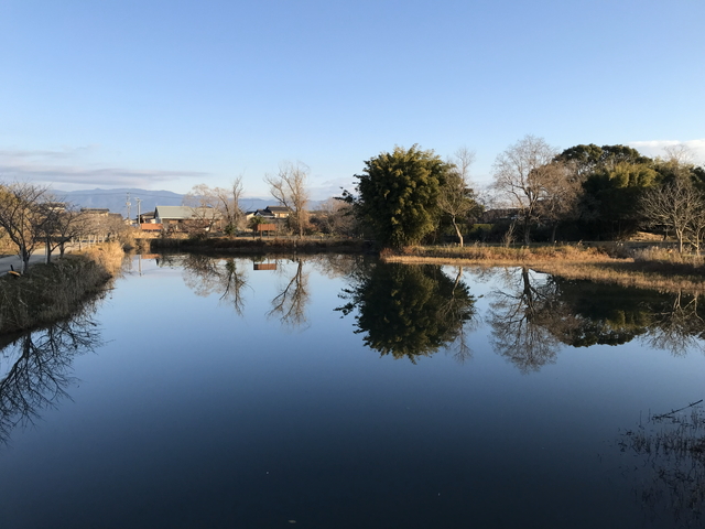 令和07年12月29日に訪問しました。 直鳥クリーク公園は、佐賀県神埼市千代田町直鳥535にある直鳥城(なおとりじょう)跡を利用した公園です。 直鳥城は、現地の案内板によると、犬塚家久が永正年間(西暦1504年〜1520年)に築城したとされています。横武城同様にクリークで囲まれた環濠平城であり、とても地域的な特徴を備えた城跡です。 直鳥クリーク公園は、朝の散歩道にしたい良い公園です。クリーク網もよくわかります。ただ写真にすると、池に見えちゃうんですよね。 タイトルである【筑紫平野を走るクリーク網】の筑紫平野には福岡県側も含まれますが、人と自然が織りなす日本の風景百選【筑紫平野の水郷】として類似の選定がされています。 【筑紫平野の水郷】が福岡県柳川市を意図した選定となるため、必然的に【筑紫平野を走るクリーク網】では佐賀県側からチョイス致しました。 人と自然が織りなす日本の風景百選【筑紫平野を走るクリーク網】。遊歩百選【弥生の里から水の郷】。 |