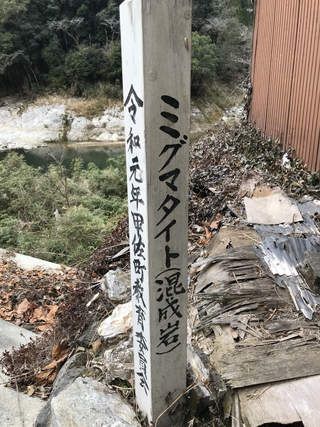 令和08年01月01日に訪問しました。 肥後変成帯(ひごへんせいたい)は、熊本県中部で見られるミグマタイトが広がっている場所のことです。 ミグマタイトとは?変成岩と深成岩が混在してみえる岩石の総称です。別名、混成岩です。 日本の地質百選の中でも特に理解が難しいターゲットですが、私の理解で言えば、複数の岩石がぐちゃぐちゃに混ざり合っている岩石で、紐状の柄が出ています。 そんなミグマタイトは、熊本県上益城郡(かみましきぐん)甲佐町(こうさまち)周辺で見られ、甲佐町役場に日本の地質百選【肥後変成帯】の認定証があります。 現地ではかなり探しましたが、熊本県道220号の甲佐町と美里町の町境に近い場所にミグマタイトの説明標柱が設置されていました。 日本の地質百選【肥後変成帯】。 |