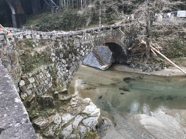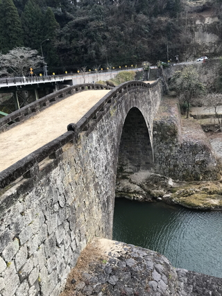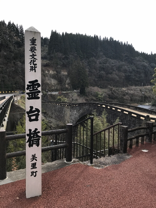 令和08年01月01日に訪問しました。 霊台橋(れいだいきょう)は、熊本県下益城郡(しもましきぐん)美里町を流れる緑川(みどりがわ)に架かる橋です。 霊台橋は、江戸時代末期の架橋された石橋です。別名、船津橋です。 霊台橋は、明治以前に竣工した石橋として日本最大のアーチ径間を誇り、架橋時に培われた技術は、7年後に完成する通潤橋に応用されたと伝わります。 昭和41年(西暦1966年)以降、自動車の通行禁止となり、観光地として整備されています。 日本百名橋・番外【霊台橋】。 |