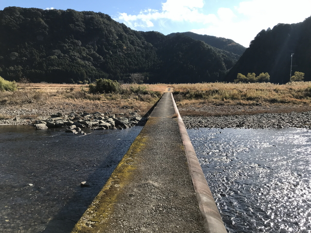 令和07年12月14日に訪問しました。 明神の潜水橋(みょうじんのせんすいばし)は、和歌山県東牟婁郡古座川町明神地区を流れる古座川に架かる橋です。 明神の潜水橋は、高知県の四万十川で見かける沈下橋と同様に、川の増水時に水面下に沈み、橋の倒壊を防ぐためあえて橋を低くして欄干などを設置しない橋の形式です。 明神の潜水橋は、平成18年(西暦2006年)06月の大雨で橋脚が流されましたが、地元民の要望により3年後、再建されました。 橋幅が狭く、車は通れず、原付位までなら走行に問題なさそうですが、橋の先がちゃんとした道路でないため、往復することになると思います。 平成の名水百選【古座川】。日本の秘境100選【古座川】。 |