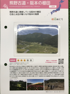 後書 令和元年07月、棚田カード第1弾として31府県56地区の棚田カードが発行されました。令和02年07月、棚田カード第2弾として11県52地区の棚田カードが発行されました。 令和03年08月、棚田カード第3弾として都道府県が主体となって棚田カードが発行されました。 令和06年04月、棚田カード第4弾として11県34地区の棚田カードが発行されました。 令和07年04月、棚田カード第5弾として4県7地区の棚田カードが発行されました。 現在、36府県259地区のカードが存在しています。また各都道府県単位のオリジナル棚田カードがあったりなかったりします。元号が令和になって暫くの頃、妻が道の駅「飛鳥」で稲渕棚田の棚田カードと出会ってきて、私に情熱的なプレゼンをするものだから、一緒に集めることになりました。 |