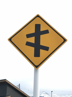 こちらのページでは国土交通省道路標識一覧の(201-A)+形道路交差点あり、(201-B)┣形(又は┫形)道路交差点あり、(201-C)T形道路交差点あり、(201-D)Y形道路交差点あり、(210)合流交通ありの警戒標識を展示してあります。 よりリアルな標識だとドライバーも分かりやすくて安全に貢献していると思うわけですよ。 |